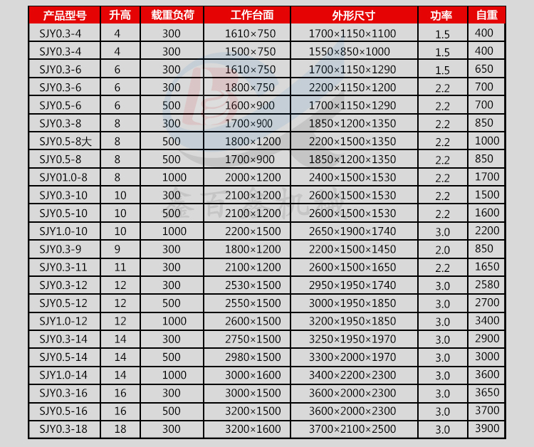 * 表示必填采購:固定式升降平臺